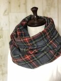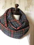 メチャ軽❣️ピュアウールガーゼ二重巻きスヌード❤️クラシカルタータンチェック(にび色)