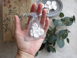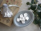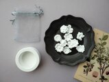 小さな花のデザインのアロマチップ、よく見ると11種類と実に豊富です。この11種類の花をひとつにまとめて、オーガンジー巾着に入れてお届けです。