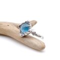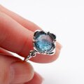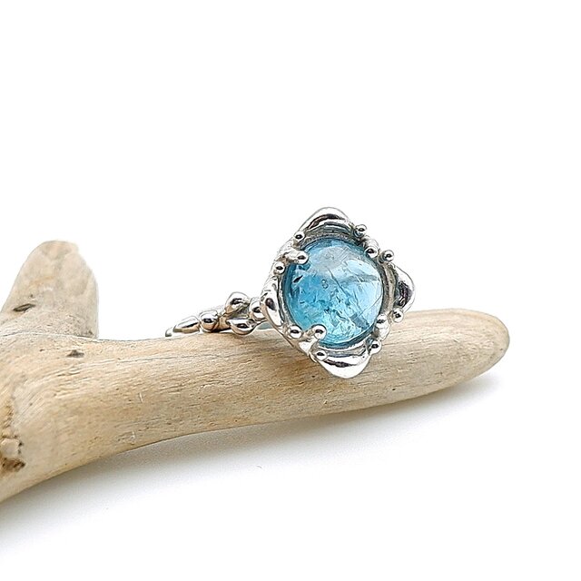 ブルーの中に、ほんのりグリーンの色味を感じるカイヤナイトを花のような愛らしい雰囲気のリングに仕上げました。