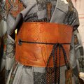 和洋折衷ワンピース 着物アンサンブル セミロング 名古屋帯サッシュベルト付き 銀鼠に映えるモダン古典 aKW-132