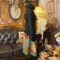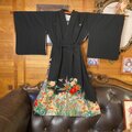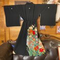 【 黒留袖 着物 リメイク ワンピース ドレス 和洋折衷 洗える 化繊 ハンドメイド レトロ 古着 翡翠の風と優美なる古典花 TKW-106】