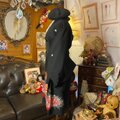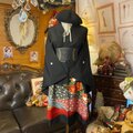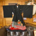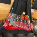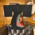 【 黒留袖 着物 リメイク ワンピース ドレス ミニミディ 和洋折衷 洗える 化繊 ハンドメイド レトロ 古着 誇り高き孔雀の羽根と大輪の華 TKW-107】