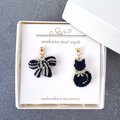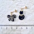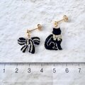 ハンドメイド 耳飾り 動物 りぼん 甘さ控えめ 大人可愛い 上品 カジュアル 手作り 黒 白 ホワイト ゴールド 金 アシメ アシンメトリー 軽い 揺れる レディース 大人の女性 大人女子 20代 30代 40代 50代 お散歩 お出かけ 普段使い デイリー プレゼント ギフト お呼ばれ パーティー 記念日 うちの子記念日 誕生日 母の日 ハロウィン クリスマス