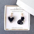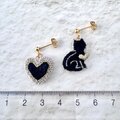 〈猫好きさんの“好き”を形にしたピアス/イヤリング〉猫とハート サージカルステンレス 金属アレルギー対応 ブラック 黒