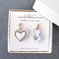 愛らしいハートのチャームを組み合わせた刺繍ピアス/イヤリング。