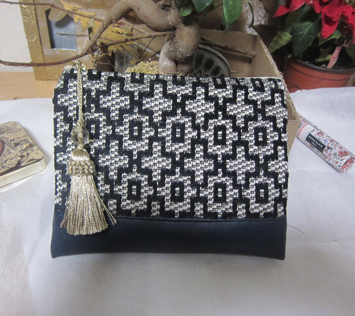 もう片面は ジャガード生地で同じくblackの斜線の中に金色のラメが