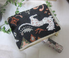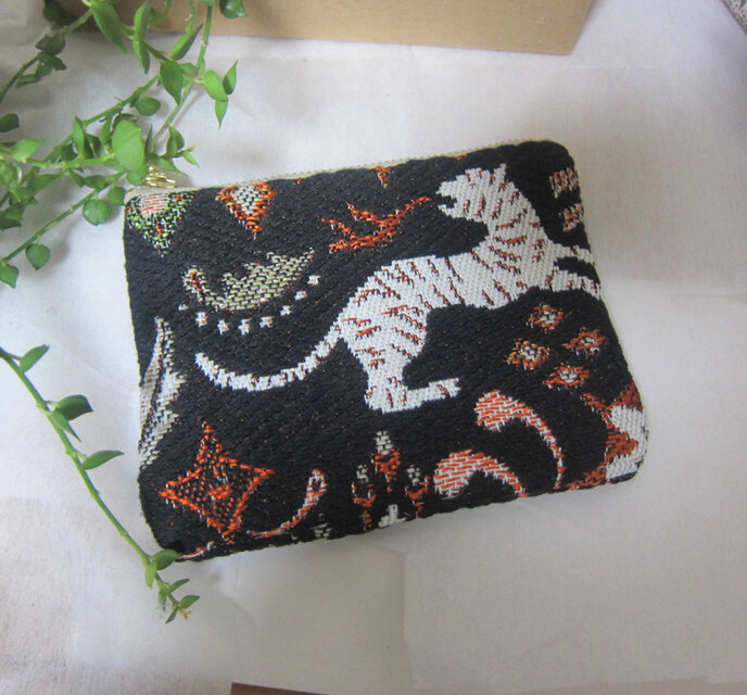 フランス生地 虎 タイガーが炎を吹く ポーチ コスメ入れ カード入れ