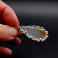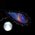このアゲートは、光に翳すことで縞模様の部分に鮮やかな虹色の輝きが浮かび上がります。