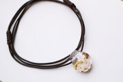 金箔を入れた透明の地に、桜を咲かせたガラスペンダントです。