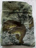 中袋には、虎と鷹の描かれた男性用のモスの長襦袢を使い、中ポケットを1つ付けています。