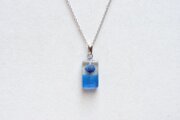 レジンアート 長方形のペンダント〈一輪の花・ブルー〉
