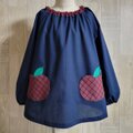 【80〜160】りんごポケット チェック ネイビー 長袖スモック 首パイピング 着丈延長可