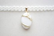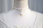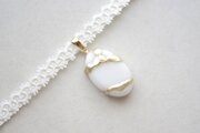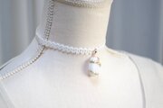 【受注製作】レジンアート 楕円モチーフとタティングレースとサテンリボンのチョーカー〈ホワイトスノー〉