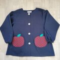 【80~160】りんごポケット レッド チェック ネイビー 前ボタン 長袖スモック 着丈延長可