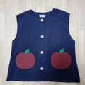【80~160】りんごポケット レッド チェック ネイビー 前ボタン 袖なしスモック 着丈延長可