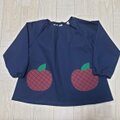 【80~160】りんごポケット レッド チェック ネイビー 長袖スモック 着丈延長可