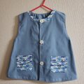 【80〜160】リバティ カーズ ヒヤシンス 前ボタン 袖なしスモック 首パイピング着丈延長可
