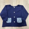 【80〜160】リバティ カーズ オックス ネイビー 前ボタン 長袖スモック 着丈延長可