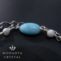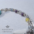 使用している石:プレナイトタンブル13mm+アマゾナイトタンブルmm+マザーオブパール4mm+アクアマリン4mm+フォスフォシデライト4mm+イエローオパール4mm+ブルーカルセドニー64面カット4mm+水晶6mm+金属パーツ