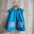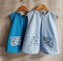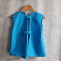 【80〜160】リバティ カーズ 綿ポリ スカイ 後ろあき ゴム 割烹着 袖なしスモック