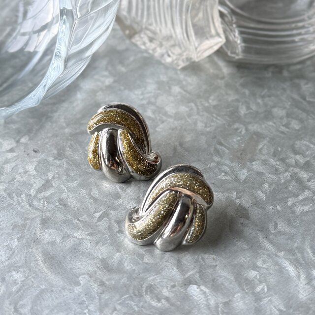 シルバートーンをベースにゴールドグリッターがアクセントになったスワールピアス。