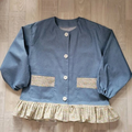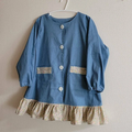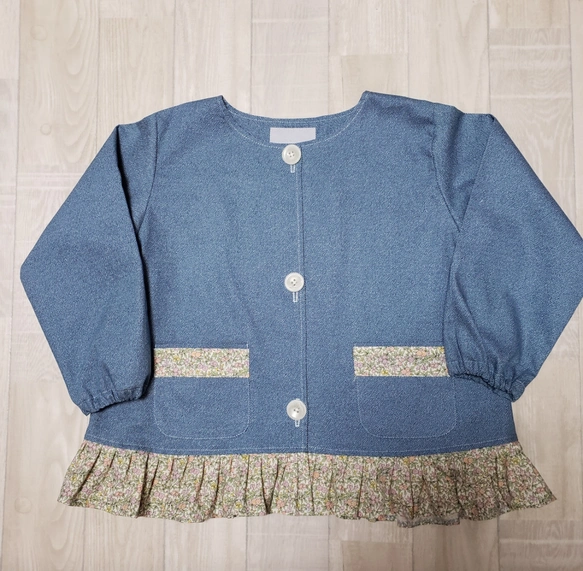 【80〜160】 リバティA ③ピンク ラセンビィコットン デニムプリント 前ボタン長袖スモック 裾フリル