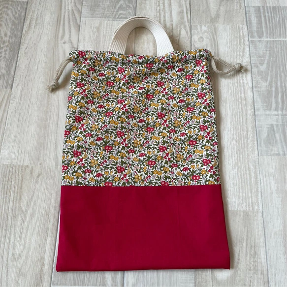 お着替袋 リバティA ①レッド ラセンビィコットン 体操着袋 Forget Me Not