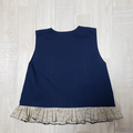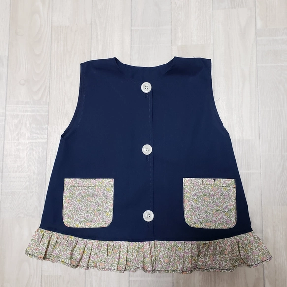 【80〜160】 リバティA ③ピンク ラセンビィコットン デニムプリント 前ボタン袖なしスモック 裾フリル