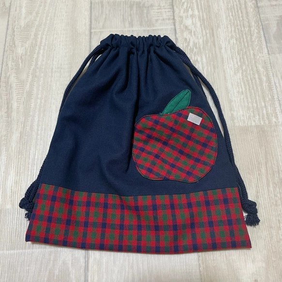 巾着袋 りんご モチーフ ツヤ加工あり 収納袋