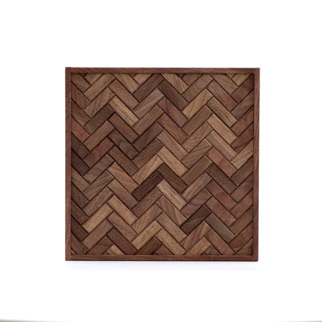 暮らしにそっと彩りを添えるアイテムとしてデザインしました。過度な装飾は避け、天然木ウォールナットの持つ美しい素材感と、幾何学的なパターンを最大限に活かしています。