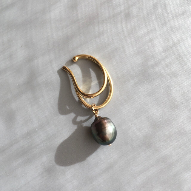【一点もの】大粒タヒチ黒蝶バロックパールのイヤーカフ【片耳】