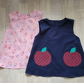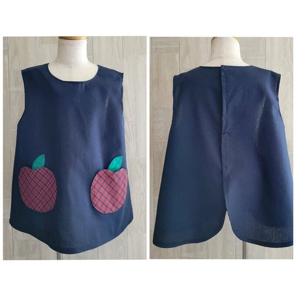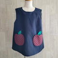 【80~160】りんごポケット レッド チェック ネイビー 後ろあき 袖なしスモック