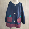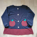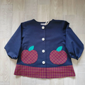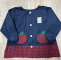 【80~160】りんごポケット レッド チェック ネイビー 前ボタン 長袖スモック 切替