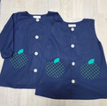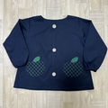 【80~160】りんごポケット グリーン チェック ネイビー 前ボタン 長袖スモック 着丈延長可