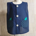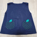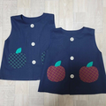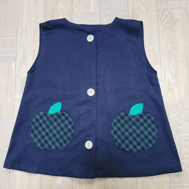 【80~160】りんごポケット グリーン チェック ネイビー 前ボタン 袖なし ノースリーブ スモック