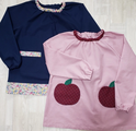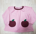 【80~160】りんごポケット レッド チェック ピンク 長袖スモック 首パイピング 着丈延長可
