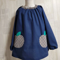 【80~160】りんごポケット ギンガムチェック ブラウン 長袖スモック 首パイピング 着丈延長可