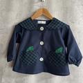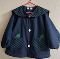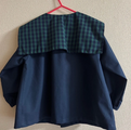 【80~160】りんごポケット グリーンチェック ネイビー セーラー襟 前ボタン 長袖スモック 着丈延長可