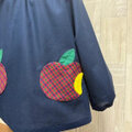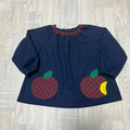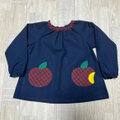 【80〜160】かじり りんごポケット レッド チェック 長袖スモック 首パイピング 着丈延長可