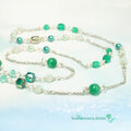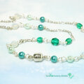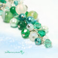 エメラルドグリーン、ミントグリーン、やさしいホワイトオパールが調和し、爽やかさの中に落ち着きを感じさせる色合いです。