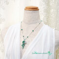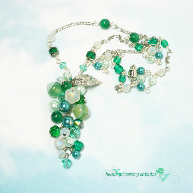 シャラシャラと、ぶどうの房のように連なるビーズが胸元に揺れる、Yラインのネックレスです。