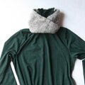 毛刈りしたままの原毛を取り寄せ、洗い、染めを行って手紡ぎした糸を使ってネックウォーマーを編みました。