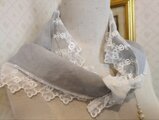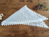 ♥️高品質のベルギーリネン♡生地に、薔薇のチュールレースをあしらった、清楚な三角形スカーフを製作しました。