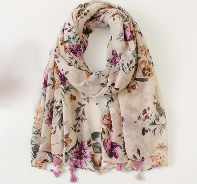 ストール 大判 スカーフ タッセル付き 花柄 春 コットン 綿 レディス 大人 カジュアル ショール マフラー ギフト 通勤通学