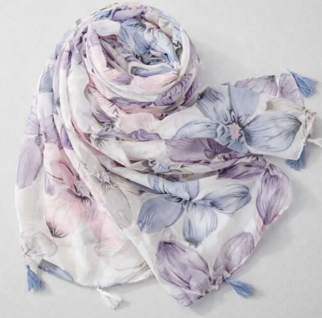ストール 大判 スカーフ タッセル付き 花柄 春 コットン 綿 レディス 大人 カジュアル ショール マフラー ギフト 通勤通学