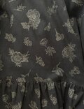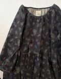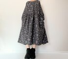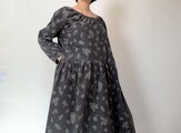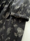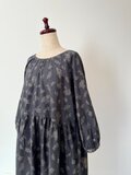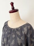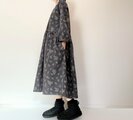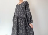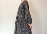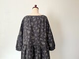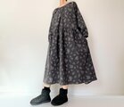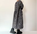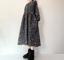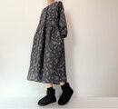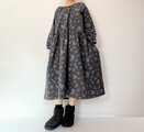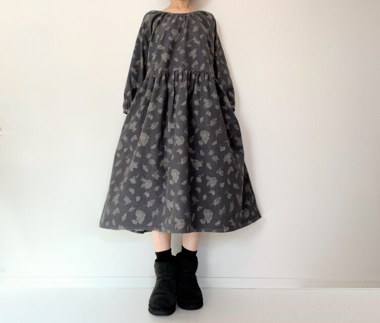 クラシカルな小鳥と草花柄*あったかコーデュロイ*大人のナチュラル長袖ワンピース*ポケット付*綿100%*チャコールグレー