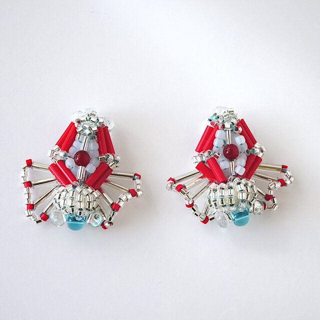 シャープでデザイン性の高い立体ビーズ刺繍のピアス。