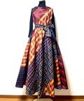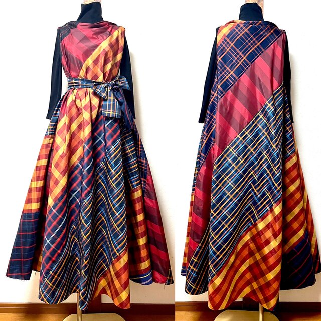 バイヤス地の目で仕立てたフレアー分量たっぷり(3m以上)のワンピースです。