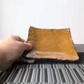タタラで粘土を板状にした後、板で叩いて模様をつけました。