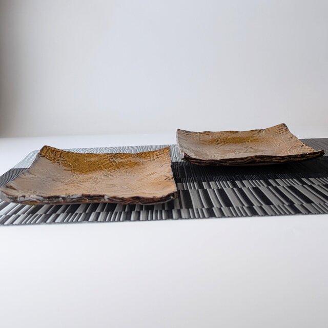 【新春福袋 特別価格】飴色の角皿2枚セット 【手仕事 民藝 和 陶器】